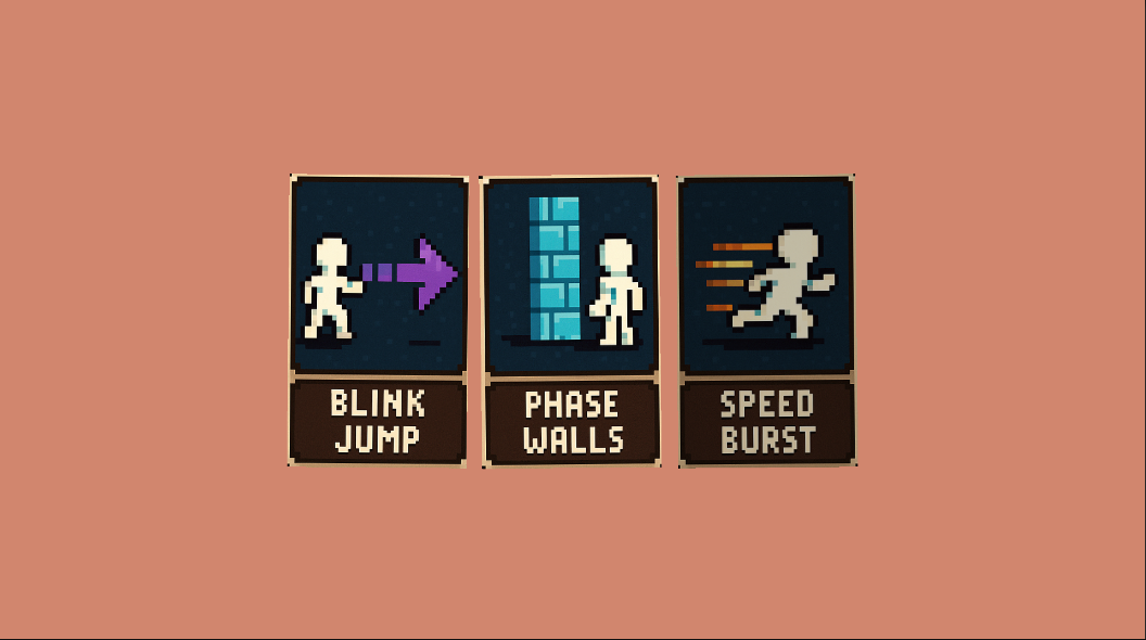 - Some passive abilities (like faster dash or wall climb) are randomly granted at the start of each run.